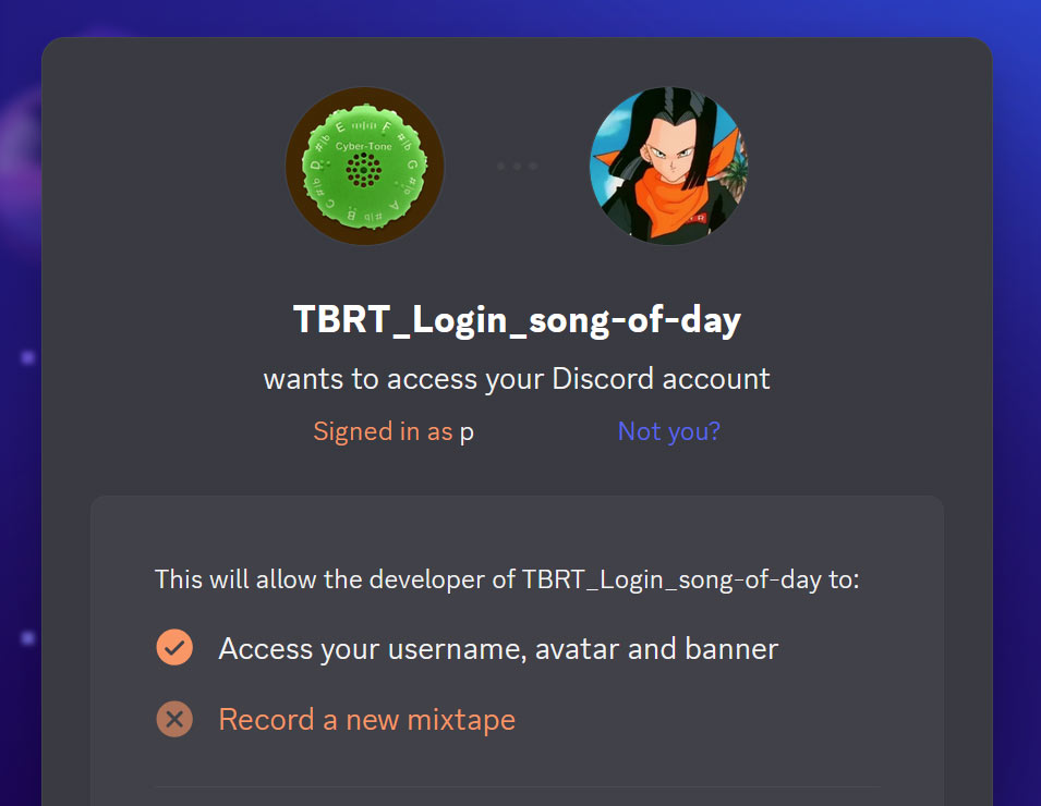 TBRT - Song of the day submit Discord loginLogin gives this page your username and list of channels to check if you are a TBRT member.